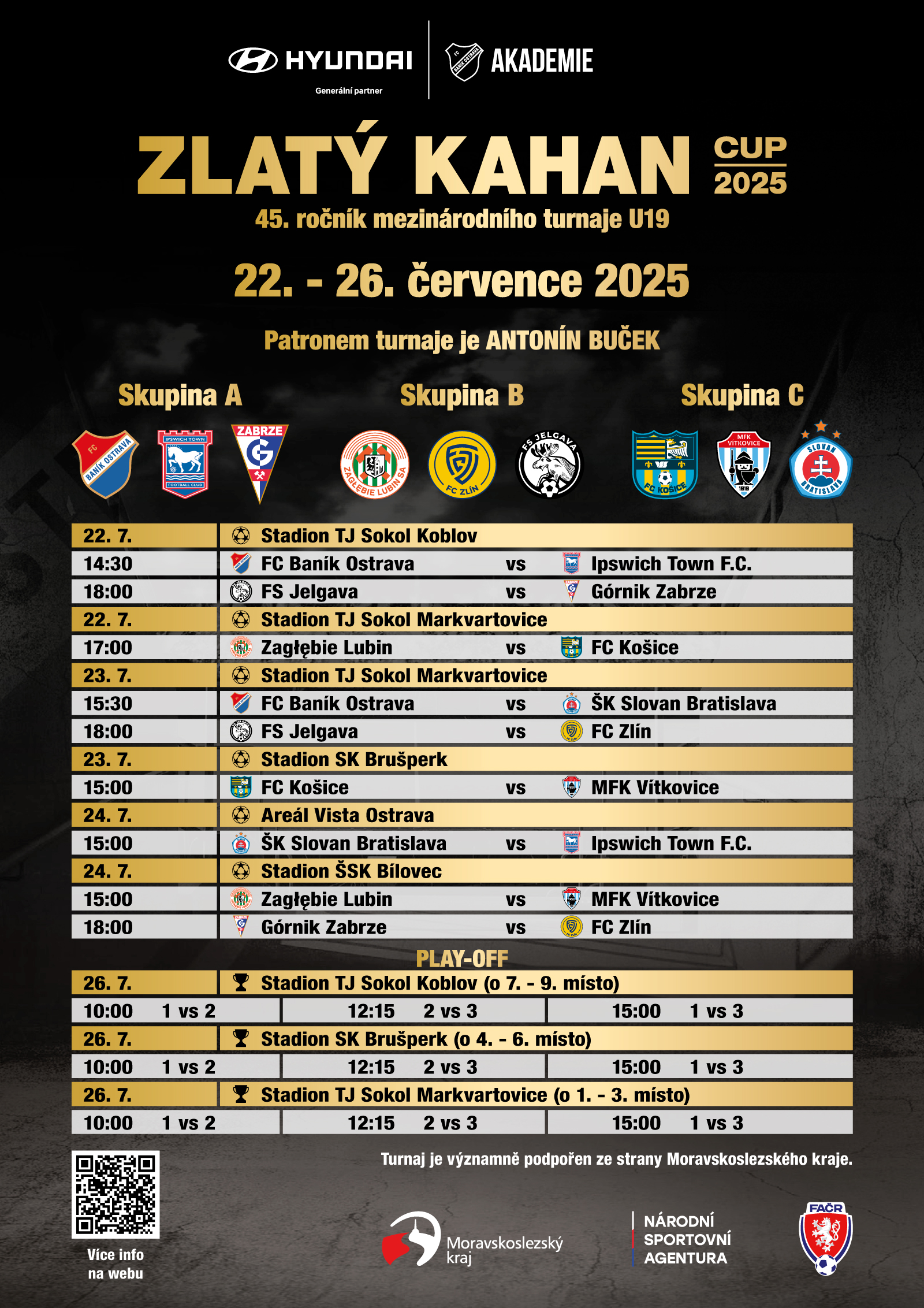 V rámci turnaje s v Koblově odehraje několik utkání. V úterý 22.7.2025 se mladí fotbalisté Akademie FC Baník Ostrava utkají s týmem Ipswich Town F.C., a to od 14:30