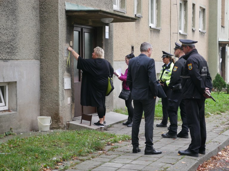 V pátek 27. září jsme opět provedli kontrolu nájemních bytů na ulici Technické v Hrušově. Prohlídka bytů se uskutečnila v bytech společnosti RESIDOMO, za účasti zástupců této společnosti, za asistence Městské policie Ostrava. V 56 bytech jsme opět řešili především to, zda se v bytech nezdržují osoby, které zde nejsou hlášené.