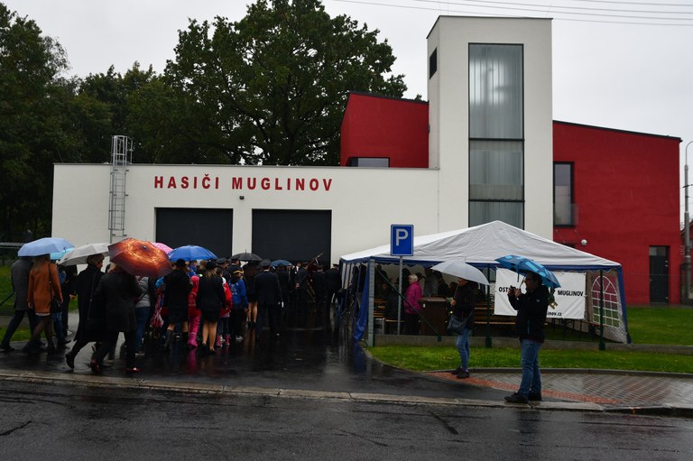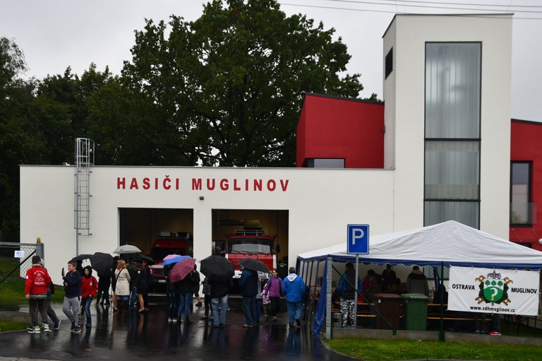 V sobotu 5. října byla slavnostně otevřena nově postavená hasičská zbrojnice v Muglinově. Pásku přestřihl starosta Richard Vereš, primátor města Ostravy Tomáš Macura, ředitel HZS MSK Vladimír Vlček a velitel jednotky dobrovolných hasičů Muglinov Ivo Adámek. Mezi další hosty, kteří se zúčastnili patří náměstek primátora Radim Babinec, místostarostka Slezské Ostravy Ivona Vaňková a místostarostové Roman Goryczka Vladimír Lyčka. Nové hasičské zbrojnici, ale i nově přidělené cisternové automobilové stříkačce, hasičskému praporu a soše sv. Floriána, kterou darovali našim hasičům kolegové z partnerského města Grodziska požehnal ostravský děkan Diecéze ostravsko-opavské Libor Botek.