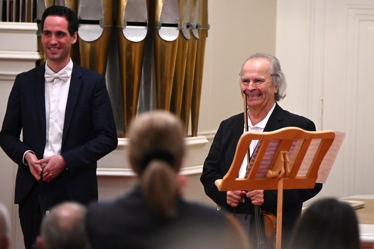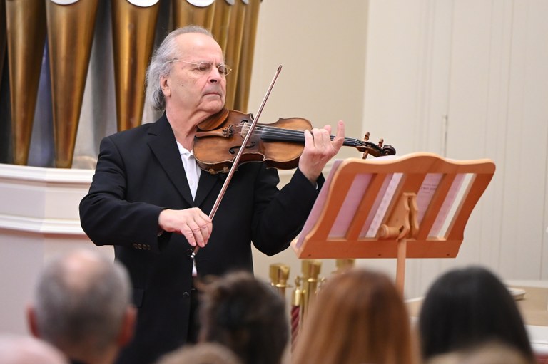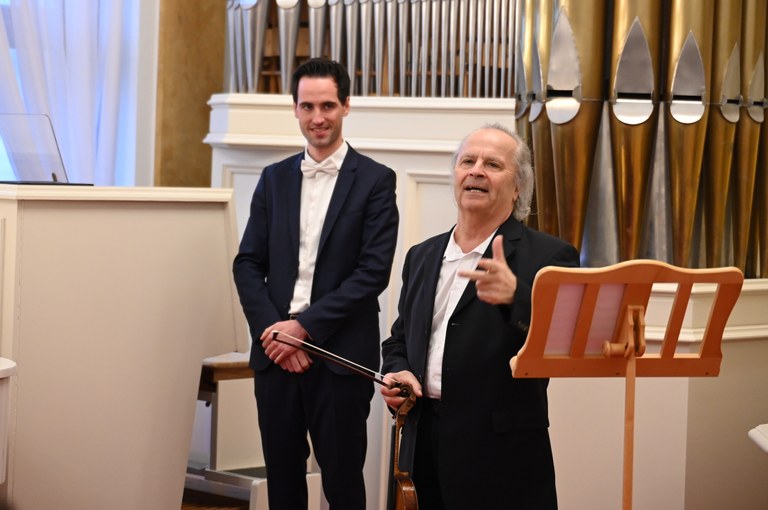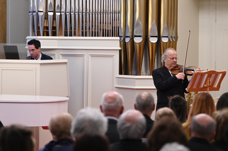 Mimořádný koncert houslového virtuosa Václava Hudečka a výjimečného varhaníka Josefa Kratochvíla si vyslechli návštěvníci obřadní síně slezskoostravské radnice v úterý 14. dubna.